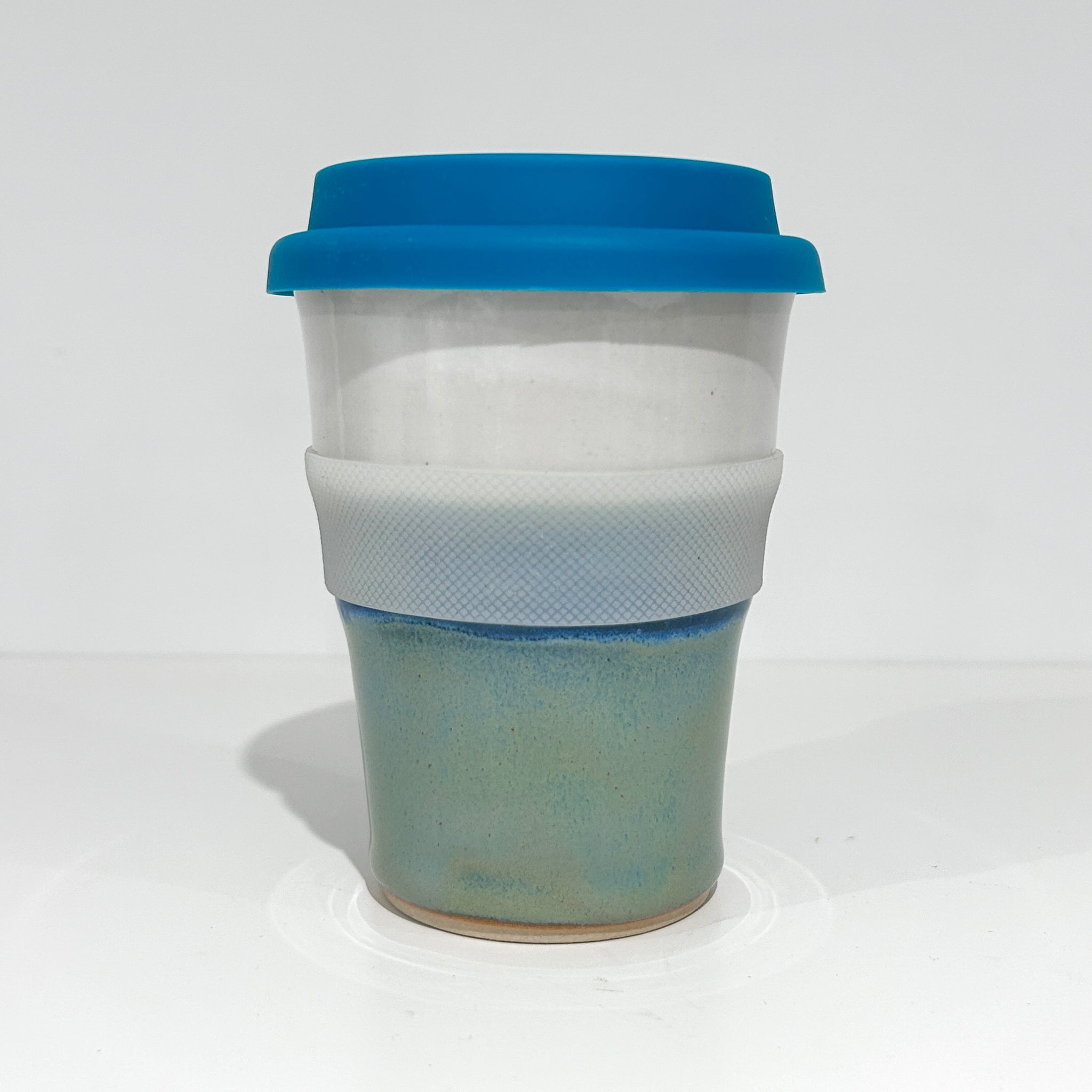 Handmade ceramic travel cup glazed in arctic turquoise.